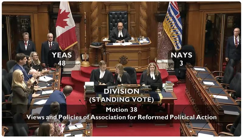 Yesterday, politicians returned to the Legislative Assembly of BC. One of their first orders of business was a motion to condemn the Association for Reformed Political Action (ARPA).